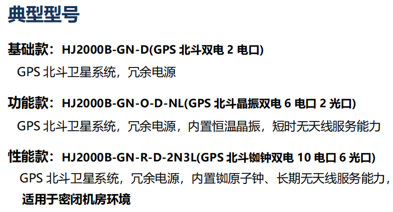 概述 HJ2000B系列NTP網絡時間服務器支持標準NTP(含v1/2/3/4)和SNTP網絡協議,可為計算機應用系統、流程控制管理系統、電子商務系統、網上B2B系統以及數據庫集群等系統需要提供精密網絡授時服務和時間戳服務,廣泛應用于企事業單位、金融、移動通信、醫療、石油、電力、交通、工業以及特殊行業等各個領域。 HJ2000B系列NTP網絡時間服務器采用安全的MD5協議和證書加密方式,支持參考源冗余、網口災備、雙機熱備等功能,確保系統服務可靠;設備具有完整的日志記錄,便捷的WEB管理界面,同時設備支持SNMP網絡管理協議,并提供獨立的NTSM監控軟件來監測客戶端時間偏差。 HJ2000B創新性的采用了基于PCI-E總線全模塊化插箱設計,基于Linux的全系統集中監控以及泰福特具有完全自主知識產權的時間馴服和守時技術,可實現GPS、北斗等多參考源輸入和多類型時頻信號輸出的按需靈活配置,可實現系統板卡級實時故障診斷與處置,以及SNMP、UDP、CONSOLE等多種協議管理控制接口,可廣泛應用于企事業單位、金融、移動通信、醫療、石油、電力、交通、工業以及特殊行業等領域。 HJ2000B可以配置5個PCI-E 插槽,每個插槽支持4路千兆電口或者2路萬兆光口,方便擴展,可支持22路電口或10路光口,或電口光口的混合配置。網絡接口默認支持NTP協議,可通過軟件配置支持IEEE1588v2(PTP)協議。 | 產品特性 ●<30ns硬件同步精度(使用北斗/GPS接收機,典型,RMS); ●<0.1ms局域網NTP服務授時精度(北斗/GPS接收機); ●<10ms復雜網絡NTP授時精度; ●≥139000次/秒單口NTP請求; ●>500萬授時客戶端數量; ●<1×10-12日平均頻率準確度; ●>100000小時MTBF; ●1PPS信號輸出; ●2個標準千兆以太網電口(標配); ●5個PCI-E插槽,單插槽支持4路千兆電或2路萬兆光(選配); ●銣原子鐘/恒溫晶振內置時鐘(選配); ●冗余雙電源供電(選配); ●鋰電池供電接口(選配); ●CDMA/4G輸入(選配); ●IRIG-B(RS422)輸入(選配); ●PPS+TOD輸入(選配); ●PTP輸入(選配); ●IRIG-B, 10MHz 時頻信號輸出(選配); ●干接點告警接口(選配)。 產品功能 ●網口輸出默認為NTP協議,可配置支持PTP協議; ●默認為一級網絡時間服務器,同時支持配置為二級服務器; ●支持MD5加密,確保授時安全; ●支持多種參考源,實現基于優先級的參考源自動切換; ●支持網口綁定,實現單機網口災備和負載均衡; ●支持心跳檢測,共享虛擬IP地址,實現雙機熱備; ●Web管理界面,支持遠程登錄、管理、配置和維護; ●NTSM監控軟件,可監控NTP服務器和客戶端詳情; ●SNMP服務接口,支持接入網管系統; ●可選配支持國產CPU和國產麒麟操作系統; ●豐富的可選件,適配各類應用場景; ●日志記錄和遠程登錄(SSH, Telnet, CONSOLE)。 |