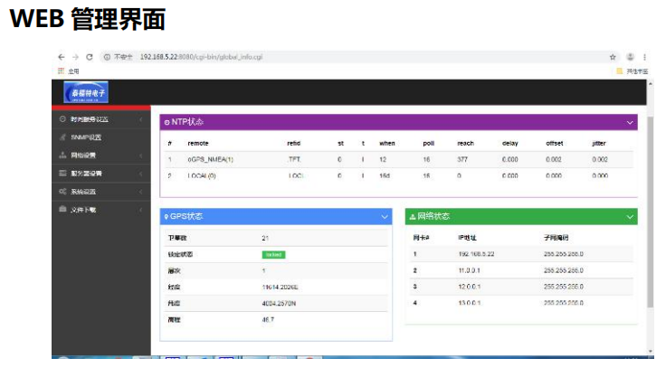-技術指標- 網絡和服務 ●NTP v1/2/3/4(單播/多播/廣播/Autokey),SNTP; ●Telnet,SSH,FTP; ●SNMP v1/2/2c/3,MIB II (RFC1213); ●IPv4、IPv6、IPv4/IPv6 Hybrid。 服務性能 ●衛星參考下同步精度 :<100ns; ●用戶容量 :>5,000,000; ●NTP請求量 :≧139000次/秒; ●可通過軟件配置支持IEEE1588v2(PTP)協議。 輸出信號指標 1PPS秒脈沖 ●與標準UTC時間偏差 <30ns(RMS); ●TTL電平,正邊沿,脈寬100ms; ●RS232電平,波特率9600,8-N-1; 選件指標 外參考輸入 ●1PPS+TOD:TOD符合NMEA0183協議; ●IRIG-B碼:RS422電平,符合GJB2991A-2008標準; ●移動通信接收機:支持CDMA/4G等通信網絡; ●PTP輸入:符合IEEE1588 v2標準。 | 其他功能組件 ●DCIN:DC-12V輸入,用于連接外置電池等直流供電設備; ●VGA:符合通用VGA顯示標準,可直接連接外置顯示器; ●干接點告警:綠端子接口,支持失鎖和故障告警。 監控管理 ●方便快捷、開箱即用,用于對設備進行全局監控; ●含設備運行狀態:NTP狀態、北斗/GPS狀態、網絡狀態等; ●可進行SNMP設置(Trap地址等)、網絡設置、NTP設置; ●可開關服務器當前運行的服務; ●可下載相關配置文件和MIB描述文件。 ●用于對HJ2000B設備中NTP服務的詳細監控; ●可監視HJ2000B服務器自身的狀態信息,包括同步狀態、時間偏差、層次信息等; ●可監視北斗/GPS參考源信息,包括鎖定狀態、定位信息等; ●可監視NTP客戶端訪問情況和時間偏差; ●支持時間偏差門限告警、失鎖告警和狀態切換告警; ●支持SNMP、syslog、Email等告警方式; ●支持服務器集群服務質量監測和優選制動操作。 |
